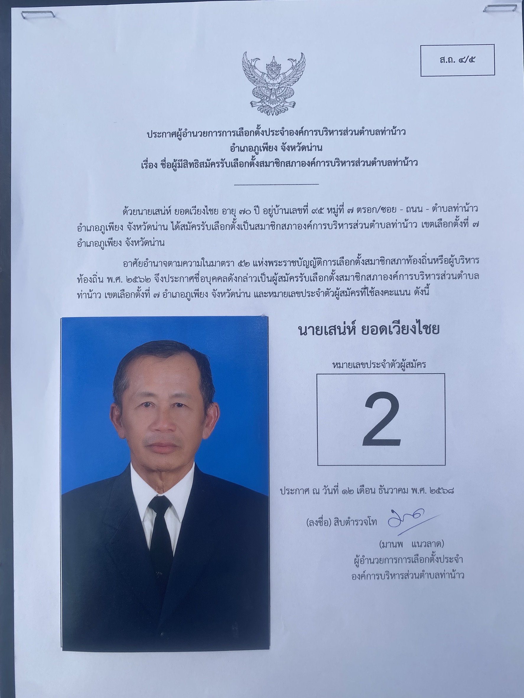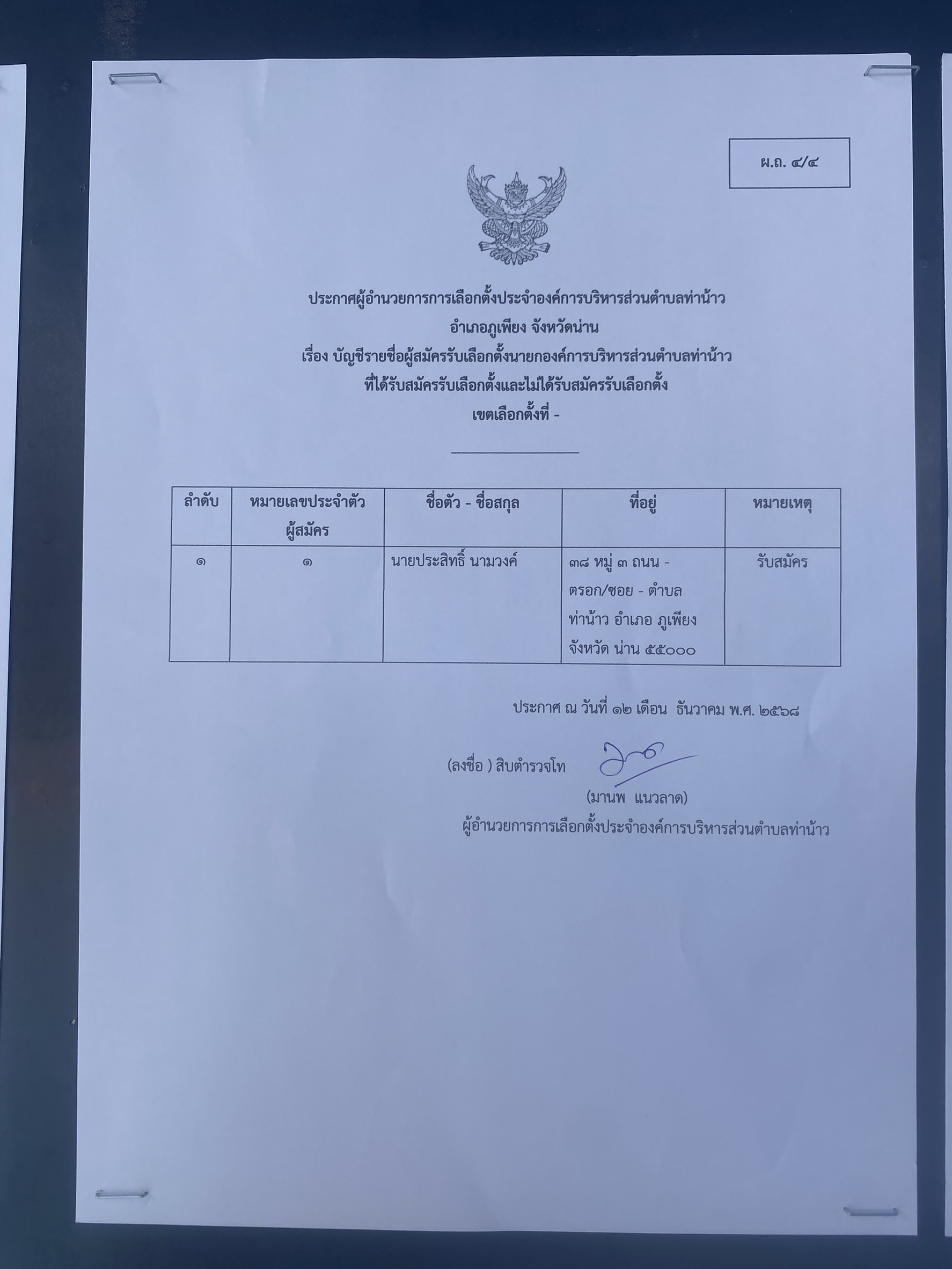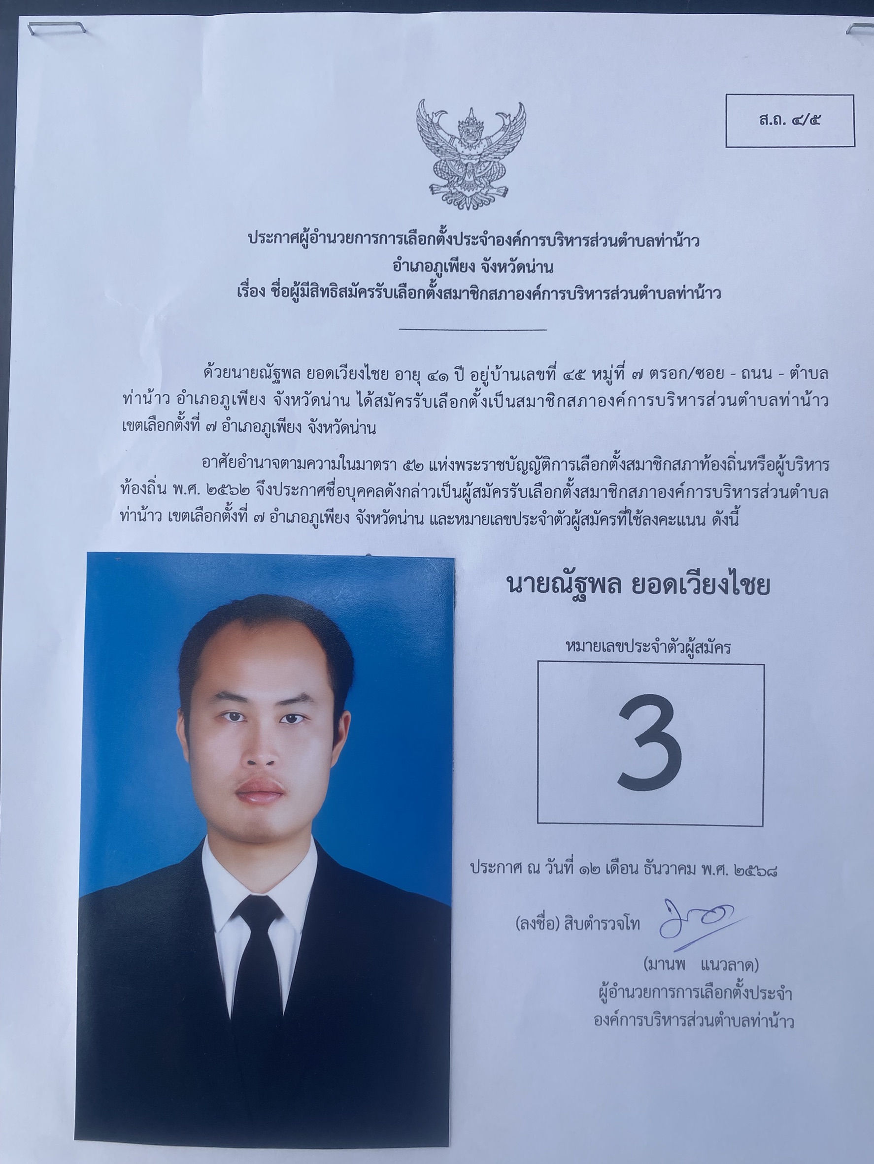 ประกาศ เรื่อง ประมวลจริยธรรมสมาชิกสภาขององค์การบริหารส่วนตำบลท่าน้าว อำเภอภูเพียง จังหวัดน่าน ประจำปี พ.ศ. 2568