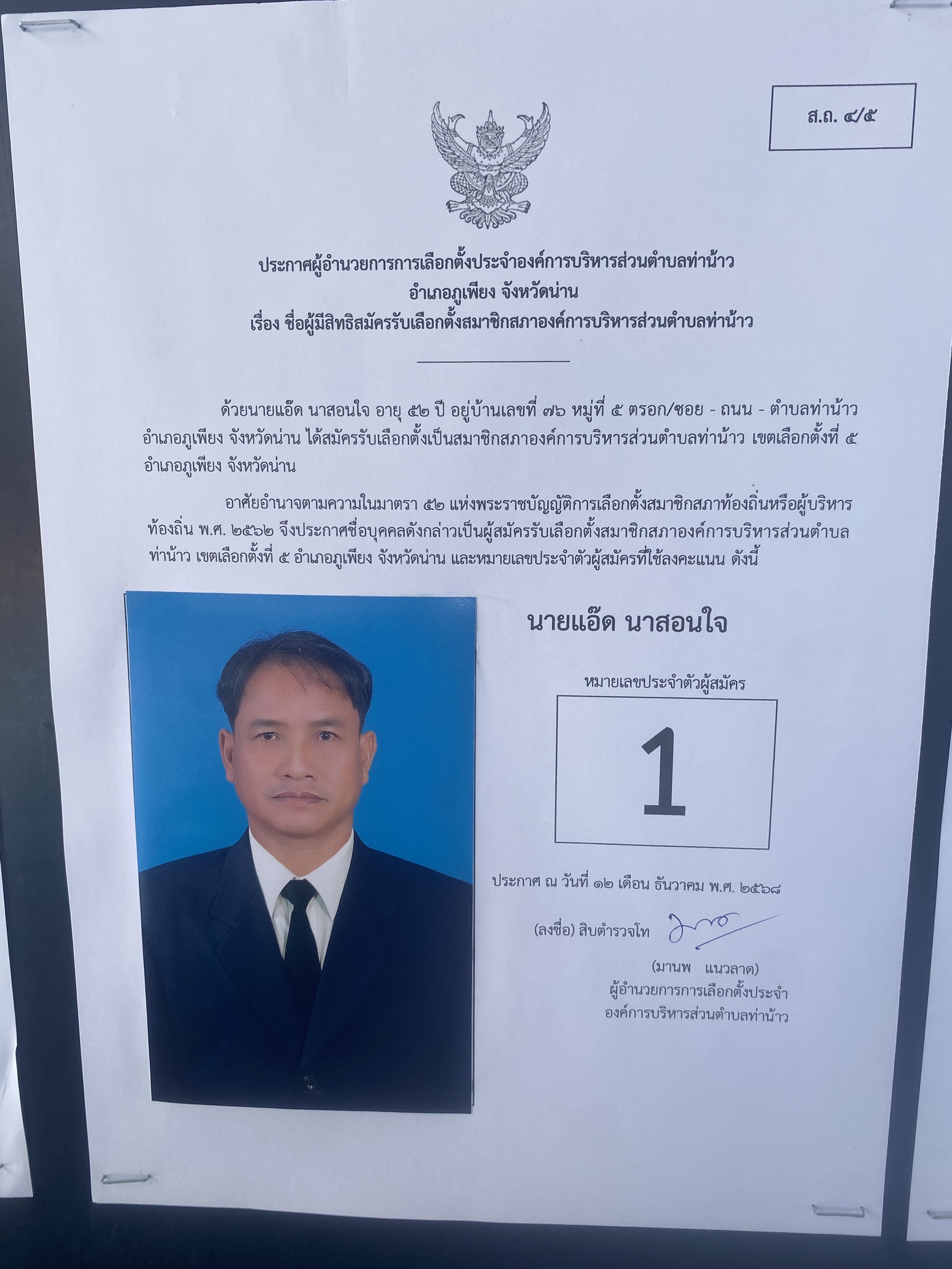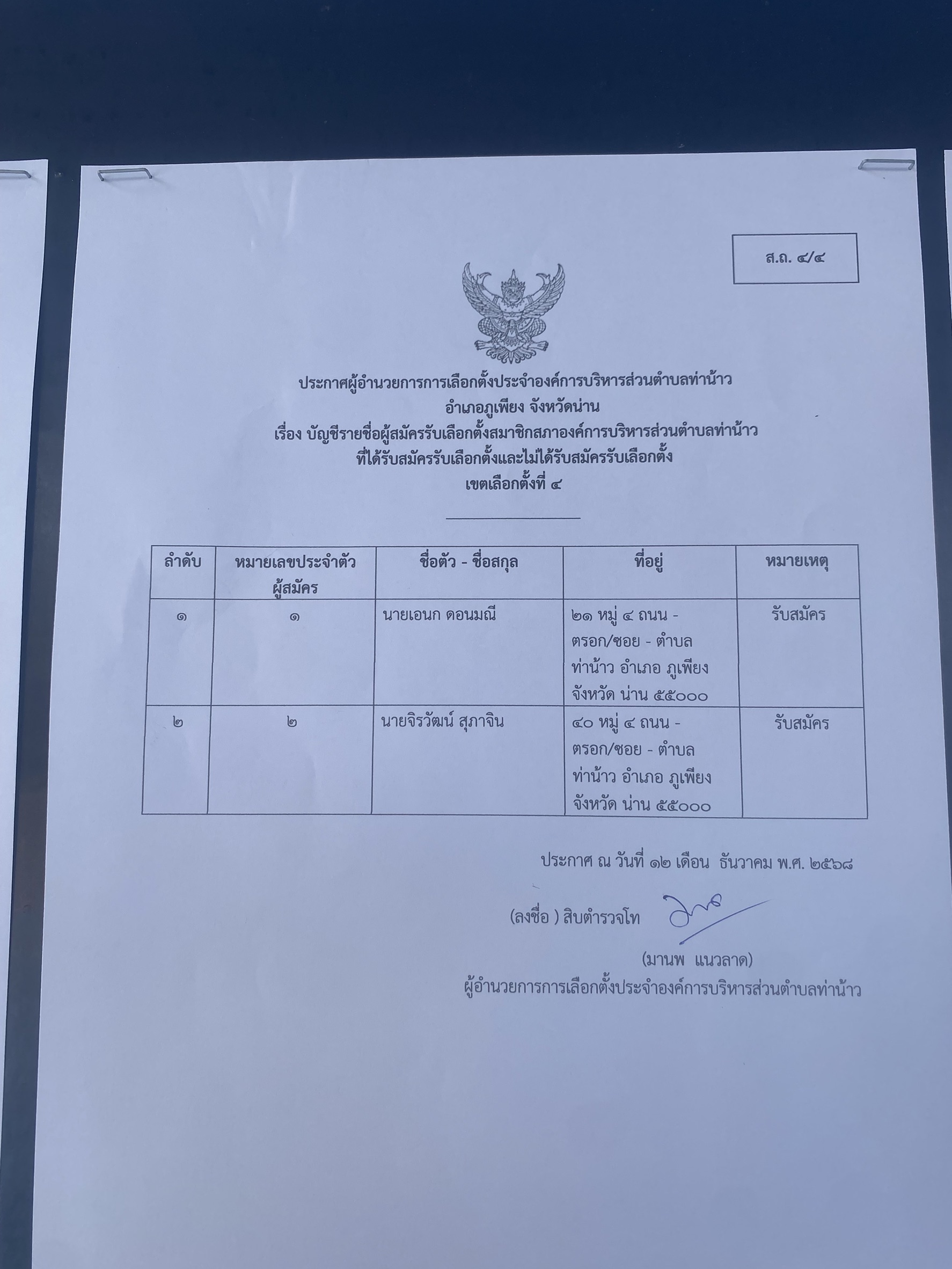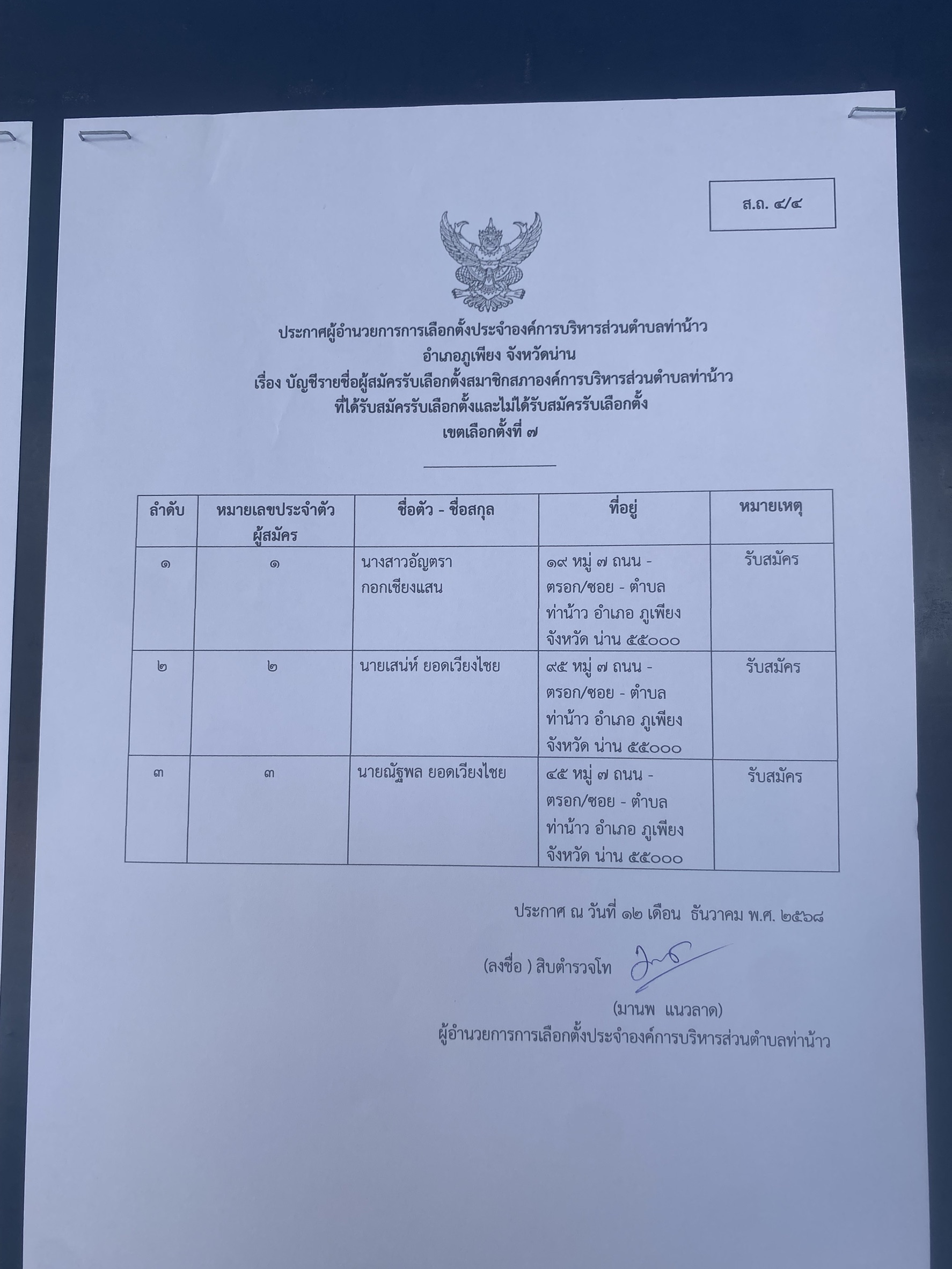 ประกาศ เรื่อง ประมวลจริยธรรมสมาชิกสภาขององค์การบริหารส่วนตำบลท่าน้าว อำเภอภูเพียง จังหวัดน่าน ประจำปี พ.ศ. 2568