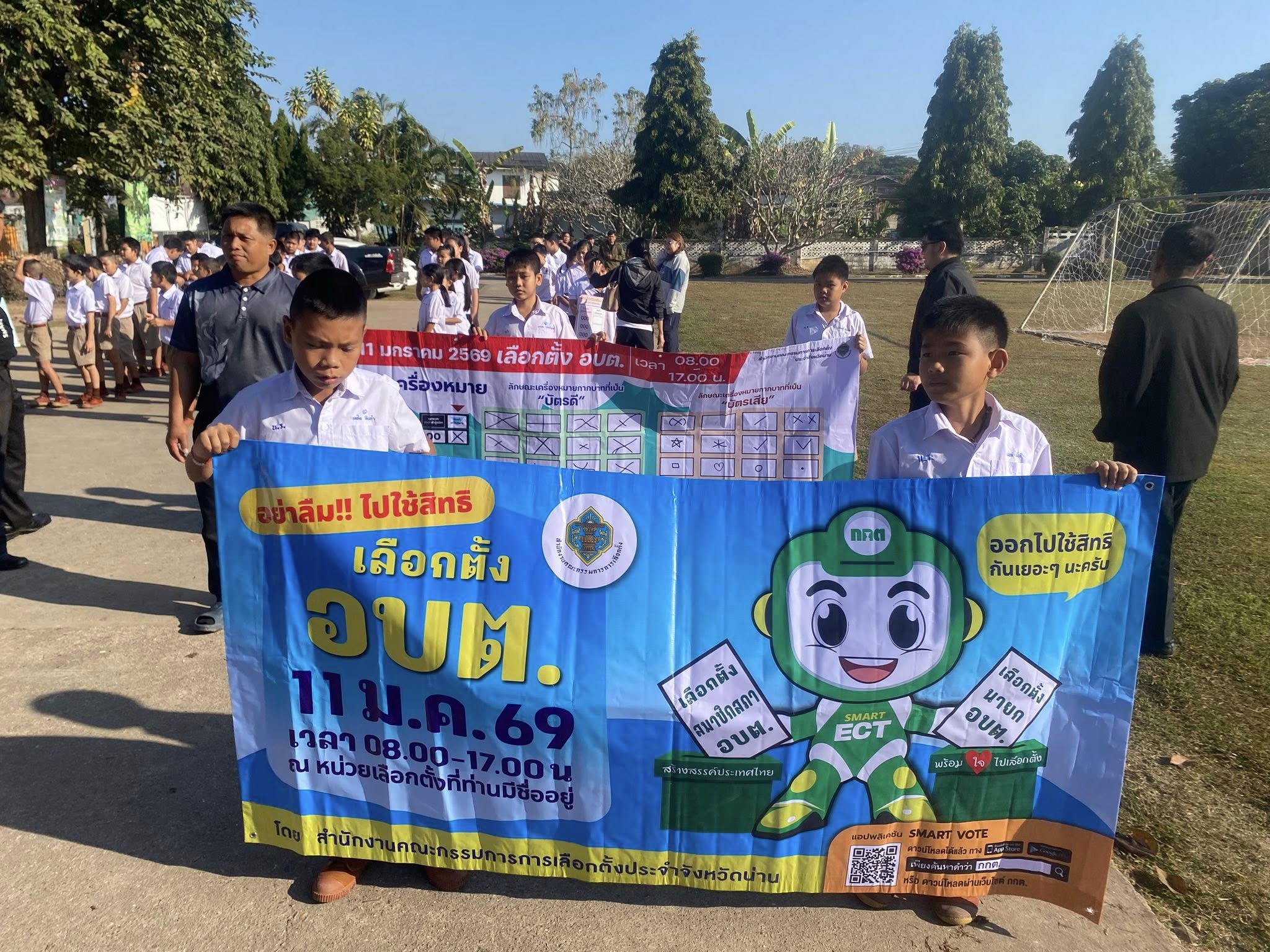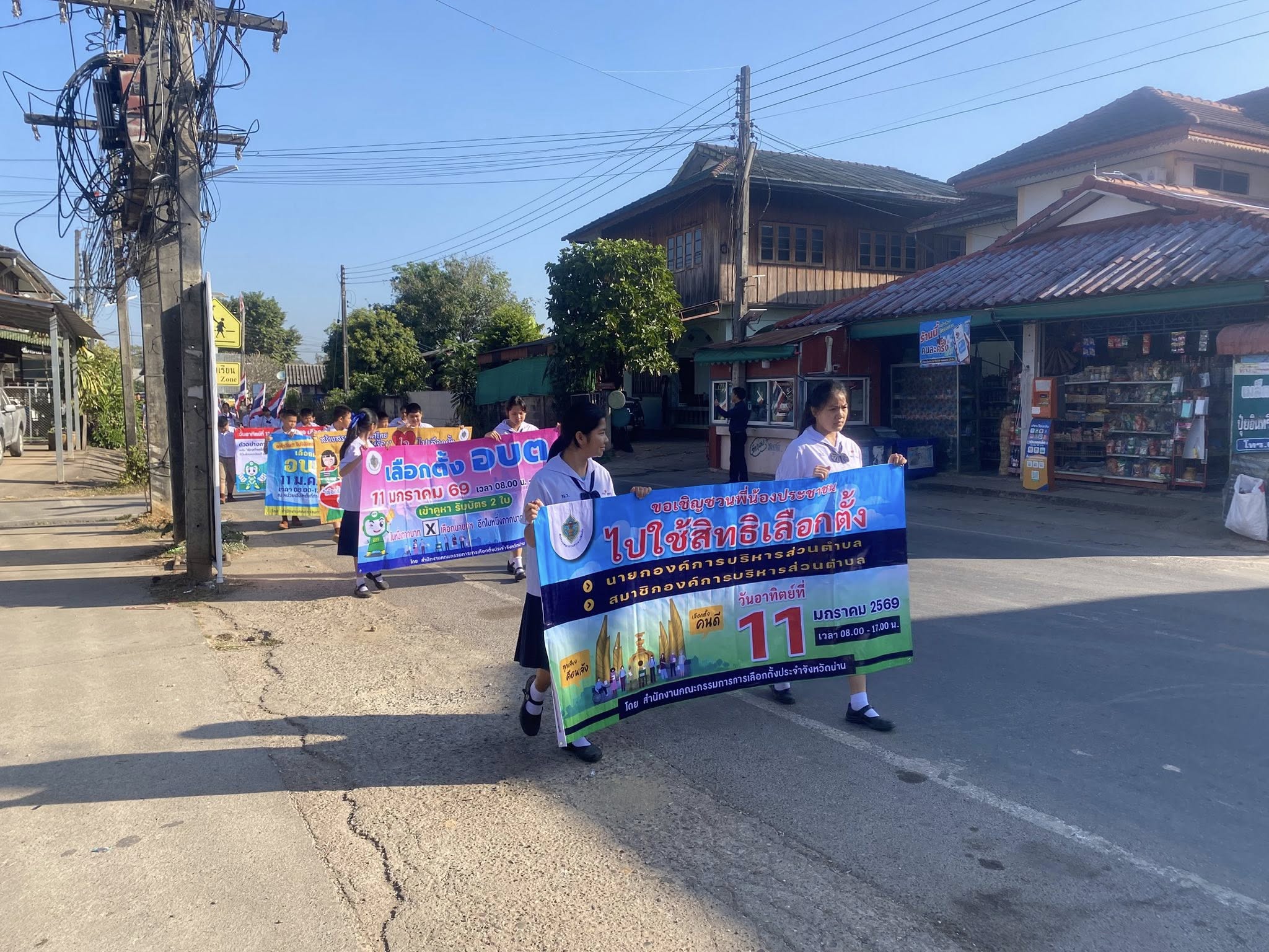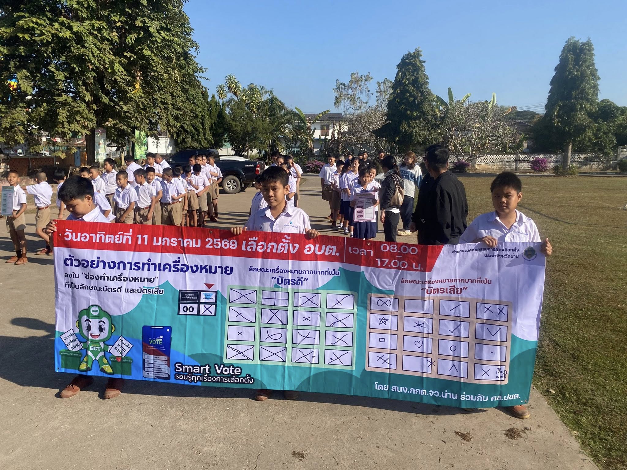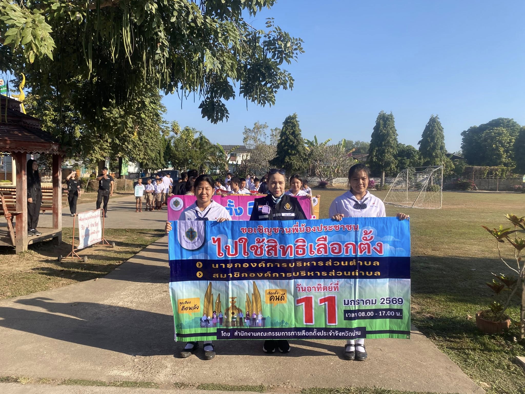 วันที่ 8 มกราคม 2568 เวลา 09.00 น. -10.00 น. องค์การบริหารส่วนตำบลท่าน้าว อำเภอภูเพียง จังหวัดน่าน นำทีมโดย นายเบญจพล ติ๊บขัน ประธานกรรมการการเลือกตั้งท้องถิ่นตำบลท่าน้าว พร้อมด้วย กรรมการการเลือกตั้งท้องถิ่น , ส.ต.ท.มานพ แนวลาด ผู้อำนวยการการเลือกตั้งประจำองค์การบริหารส่วนตำบลท่าน้าว ร่วมกับศูนย์ส่งเสริมประชาธิปไตย ต.ท่าน้าว (ศสปชต.ท่าน้าว) พนักงานเจ้าหน้าที่องค์การบริหารส่วนตำบลท่าน้าว และ กำนันนิรัญ กมลรัตนานันท์ กำนันตำบลท่าน้าว ผู้ใหญ่บ้านทุกหมู่บ้าน คระบุคลากรการศึกษา คุณครู และน้อง ๆ นักเรียนบ้านหนองรัง มิตรภาพที่ 107 ได้ดำเนินการเดินรณรงค์ประชาสัมพันธ์เชิญชวนให้ประชาชนออกไปใช้สิทธิเลือกตั้ง ในพื้นที่ตำบลท่าน้าว อำเภอภูเพียง จังหวัดน่าน