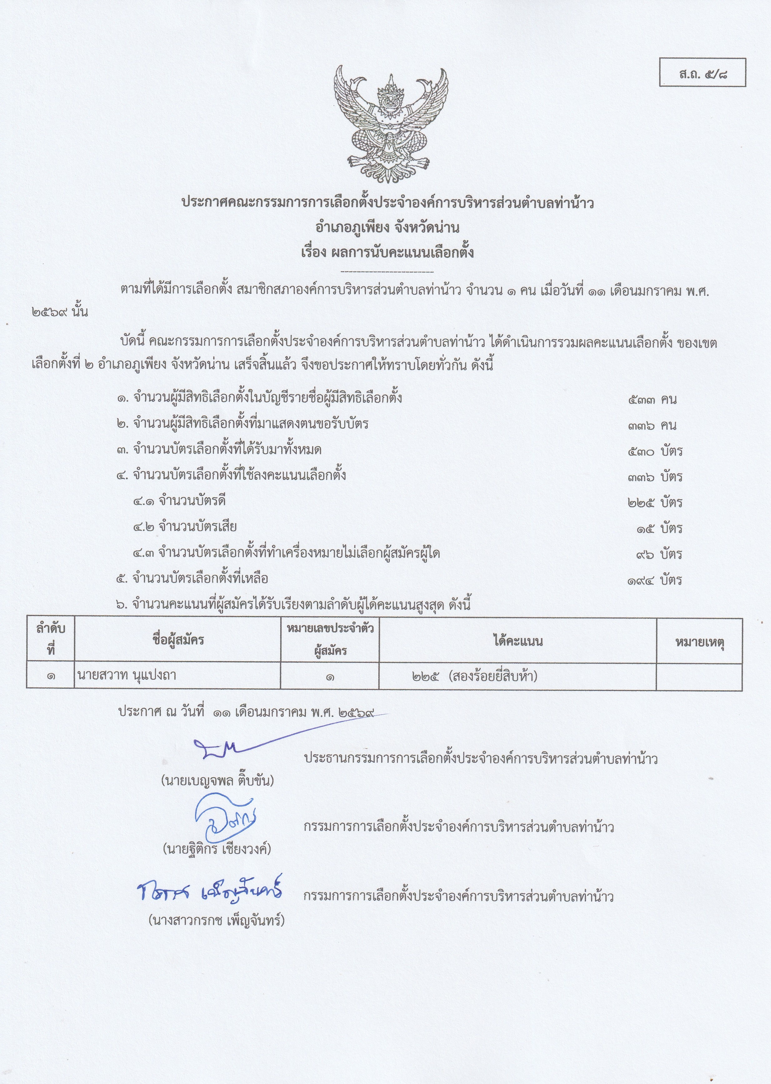 ประกาศ เรื่อง ประมวลจริยธรรมสมาชิกสภาขององค์การบริหารส่วนตำบลท่าน้าว อำเภอภูเพียง จังหวัดน่าน ประจำปี พ.ศ. 2568