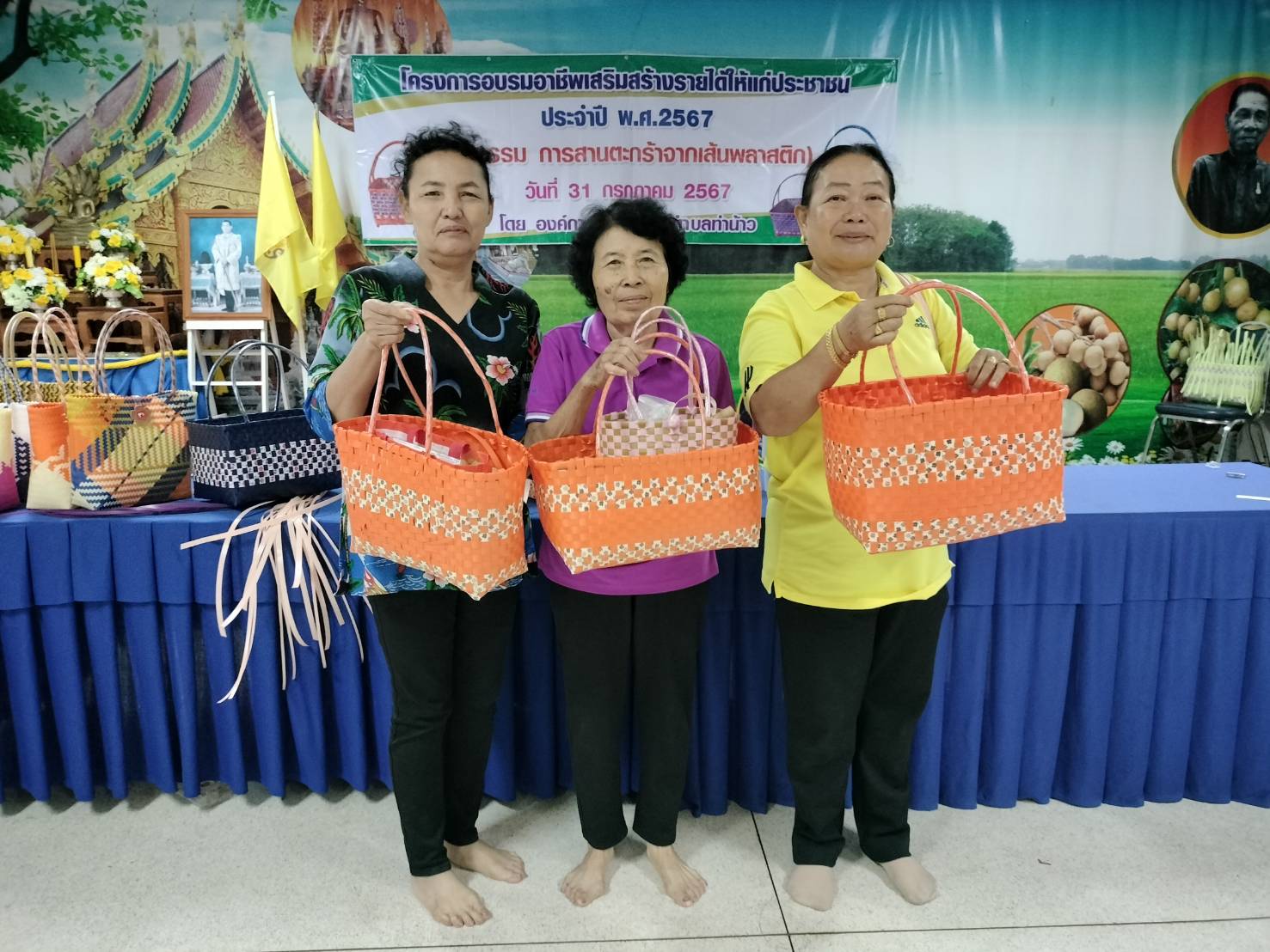 เมื่อวันที่ 31 กรกฏาคม 2567 นายชูทัศน์ นุเกตุ นายกอบต.ท่าน้าว ได้มอบหมายให้ นางรัชฎาภรณ์ วุธทะนู รองนายกอบต. เป็นประธานเปิดโครงการอบรมอาชีพเสริมสร้างรายได้ให้แก่ประชาชนประจำปี 2567 ในกิจกรรมได้สอนการสานกระเป๋าจากเส้นพลาสติกซึ่งได้รับการสนใจจากประชาชนตำบลท่าน้าวเป็นอย่างมาก